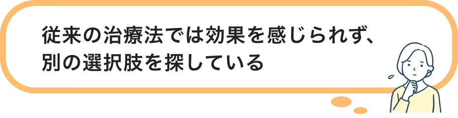 実際に治療を受けた患者さまの声まとめております。治療を受けたきっかけ、治療後のお身体の変化をお話ししています。これから治療をお考えの方の参考になりましたら幸いです。